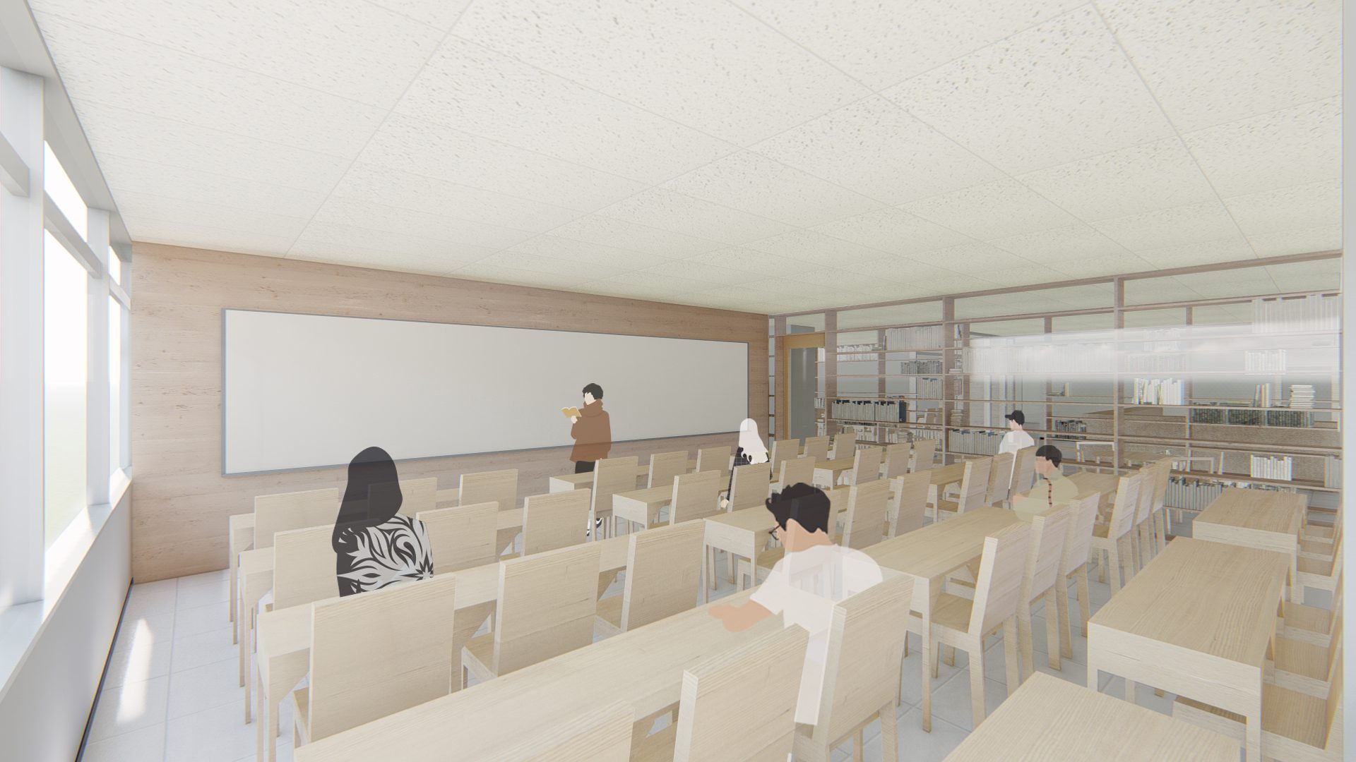 生徒の皆さんは普段ここで、6階というなかなかの高さからの素敵な眺めを楽しみながら自習などをしています。
