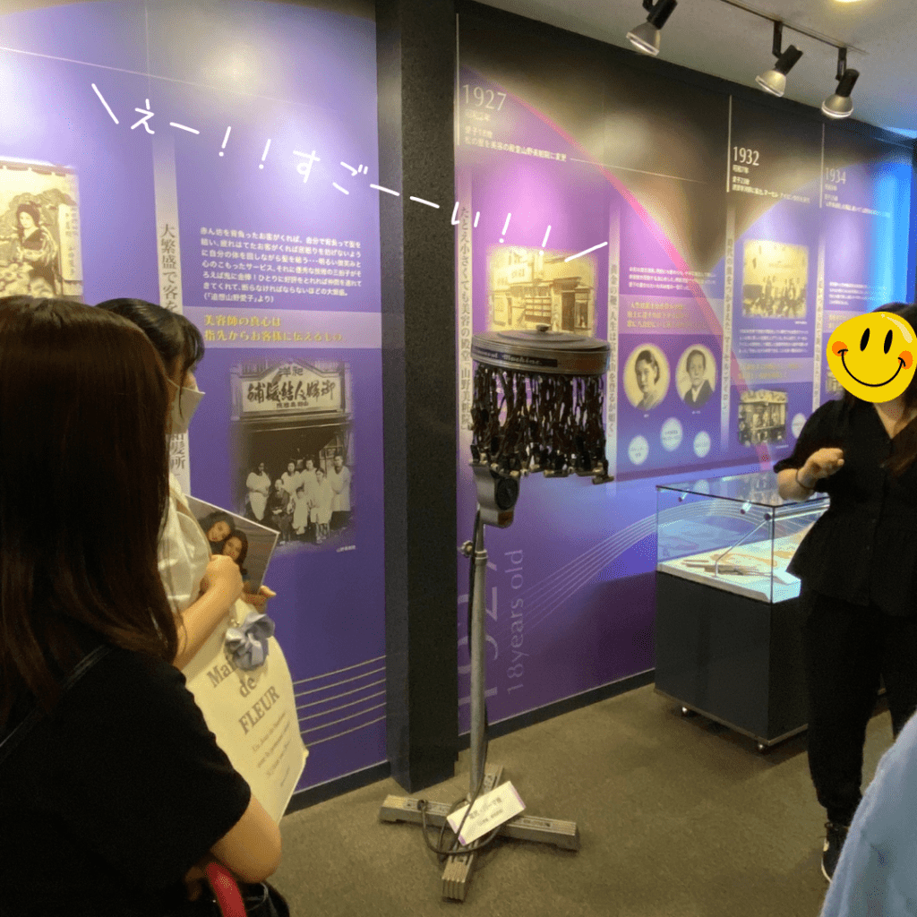 体験後も学校長に直接質問をさせていただいたり、山野ミュージアムでは美容や美容機器の歴史についてご講義いただくなど貴重な体験をさせていただきました。