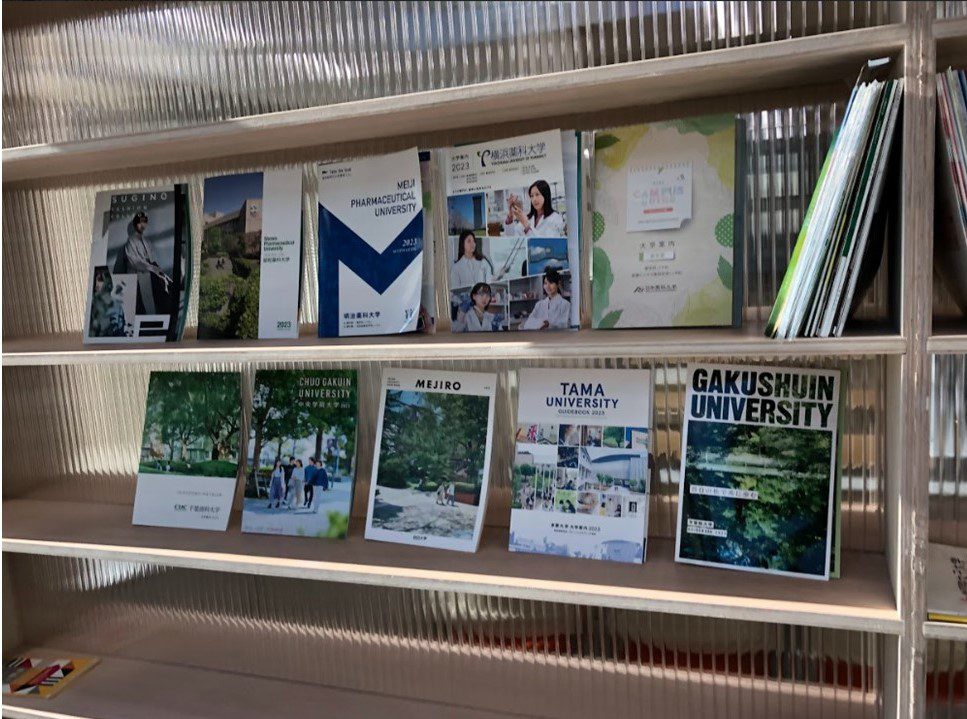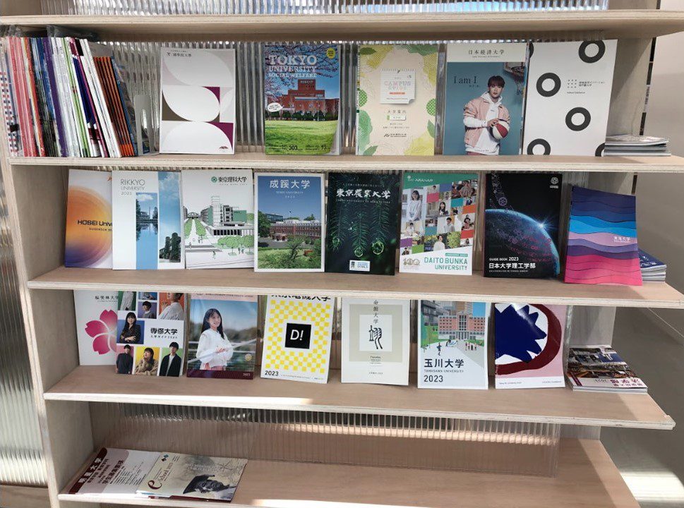 池袋キャンパスには、大学・短期大学・専門学校のパンフレットや大学進学のてびきがあり、自由に読むことができるんです!