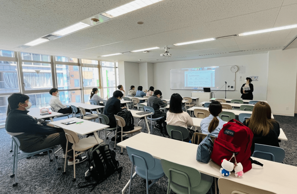 さて、今日はそんなみなさんの将来を考える助けになるようにと、午後から「夢キャリアライブ」がおこなわれました。金融業界に関わる2名の外部講師の方をお招きして、水道橋キャンパスと配信でつなぎました。
