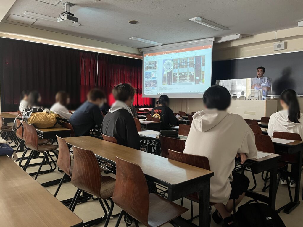 進学希望が多い生徒たちに、“大学ってどんなところ?”“大学生活ってどんな感じ?など、大学の具体的なイメージを持ってもらうため、日本大学法学部への施設訪問を実施しました。