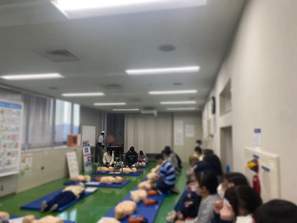 救急体験では、心肺蘇生法について学びました。傷病者がいた際の手順やAEDの使い方を知ることができ、とても有意義な体験でした。心臓の位置や心臓マッサージをする際の強さ、AEDは心臓の震えを止めるための機械など、初めて知ることが多かったです。今回の体験は25分でしたが、講習を受けることでより詳しく学べるみたいです。キャンパスに戻ってからは、AEDの位置の確認も忘れずに行いました。