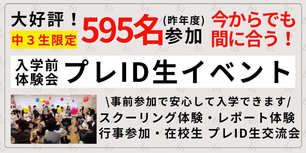入学前にID学園のキャンパスライフを「見て・聞いて・感じて」いただき、今ある「不安」を明日への「期待」に変える「3.5ヶ年教育」を体験していただくイベントです。