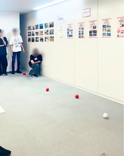 先攻チームが白色のジャックボールを投げ、続けて赤色のボールを投げます。