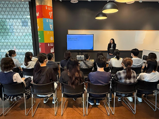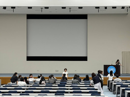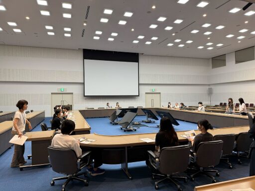 はじめに、国連大学の設立の経緯やその役割、そして国際社会への貢献のあり方について、職員の方からお話を伺いました。学術機関でありながら、世界各地の拠点で地域に根ざした課題解決に取り組む研究機関であるという点に、生徒たちは強い関心を示していました。