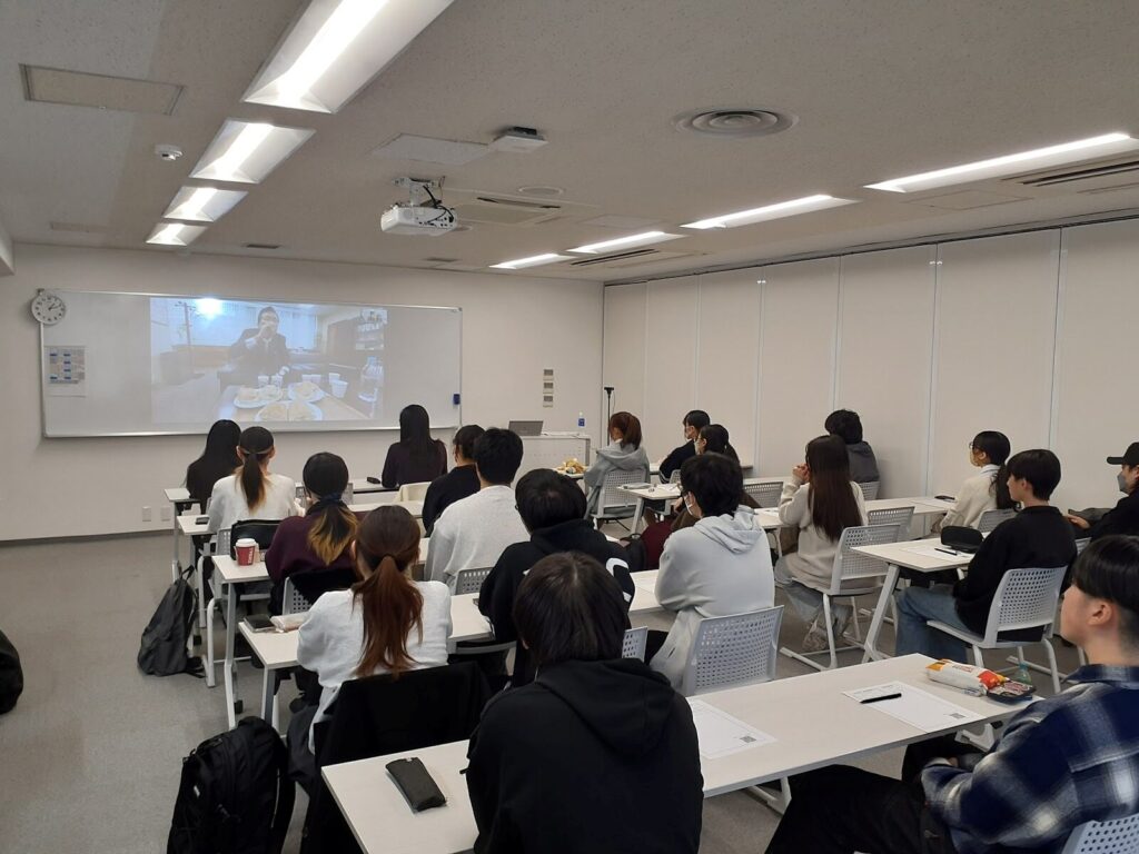 横浜キャンパスでは、そんな理事長講座の様子を投影し、多くの生徒が