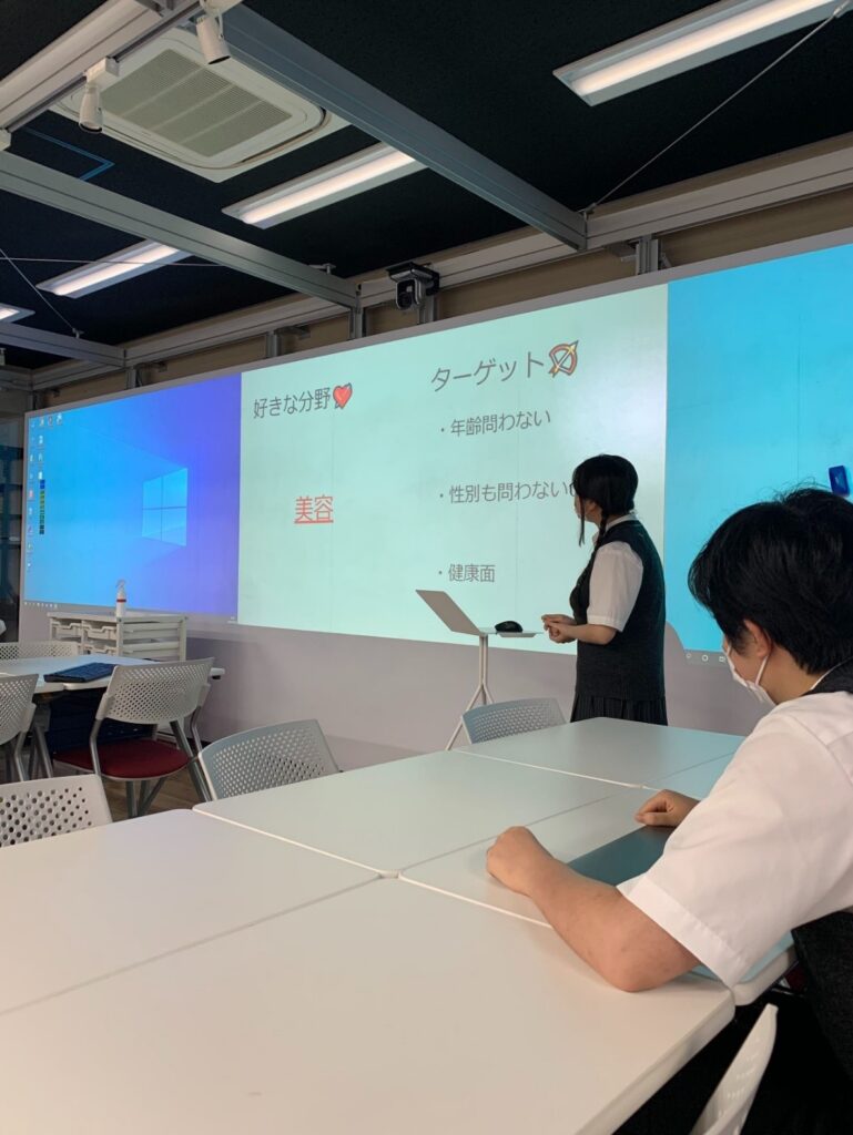 生徒一人ひとりがスライドを作成し発表しているところです。