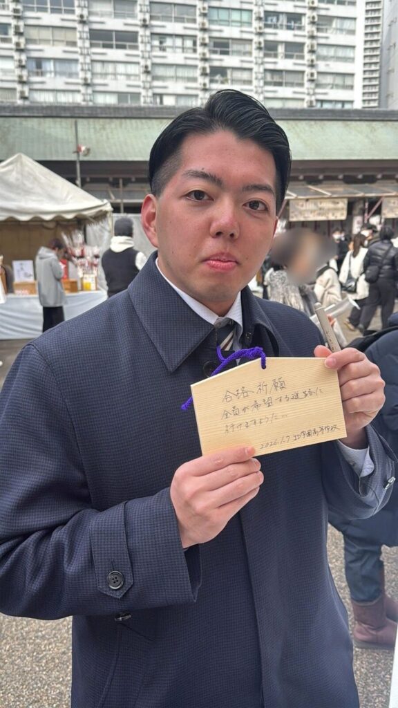 共通テストまであと少しとなってきたため、湯島天満宮で生徒たちの