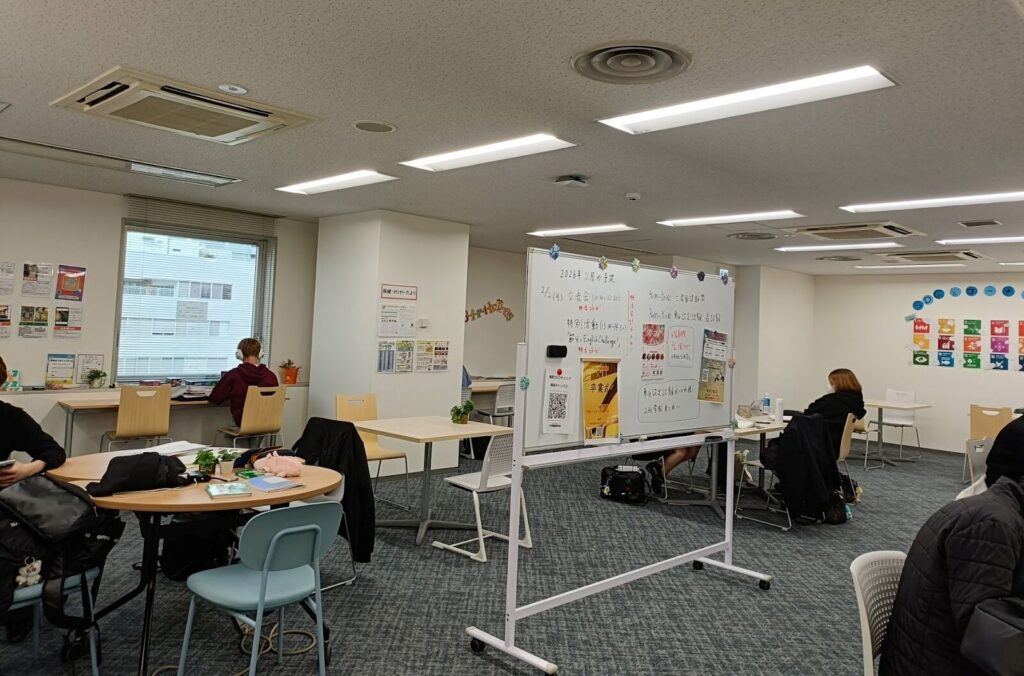 教室に入ります(空き時間は自習室で過ごします!)。