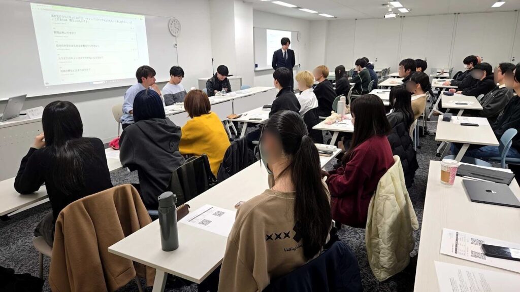 まだまだ受験形態や志望校が定まっていない生徒たちに現役の大学生・大学院生の先輩方が
