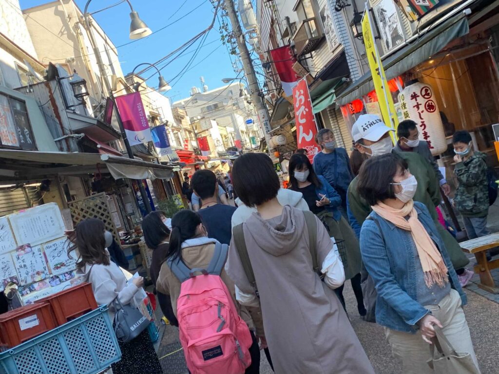 当日は雲一つない絶好のお散歩日和。浄心寺の布袋像を拝み、東京大学の赤門を見学したあとは、根津神社でお参りし、根津名物のたい焼きを食べながら谷中銀座を散策します。
