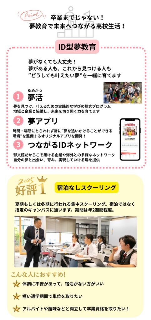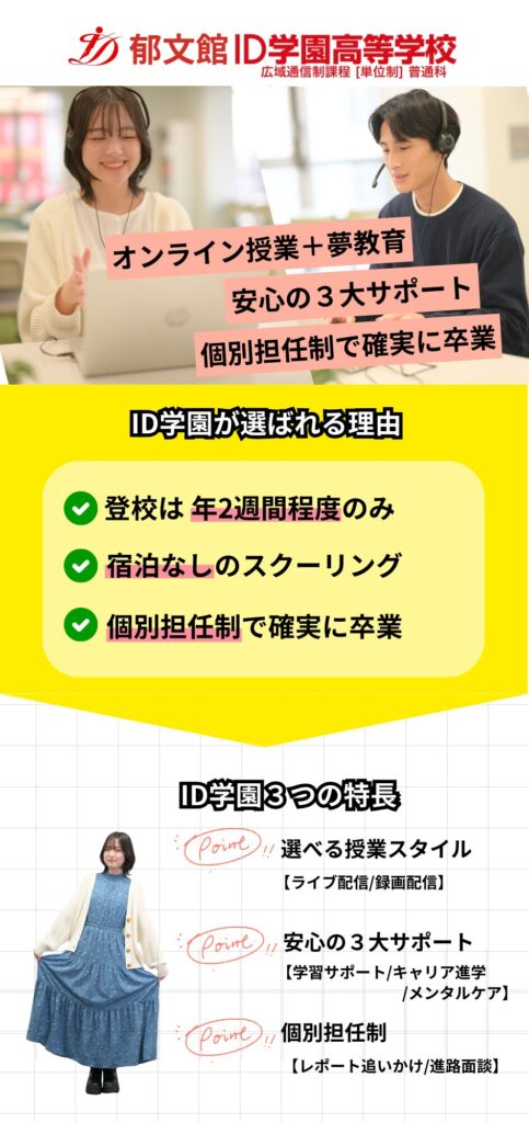 ID学園は、高等学校等就学支援金制度の対象校です。申請手続きについては入学後にご案内いたします。