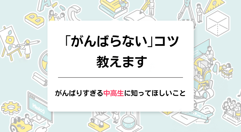 『がんばらないから成績が下がる』のではなく、『ムリをやめて自分に合った方法に変えることで、むしろうまくいく』というケースも、たくさんあるんです。
