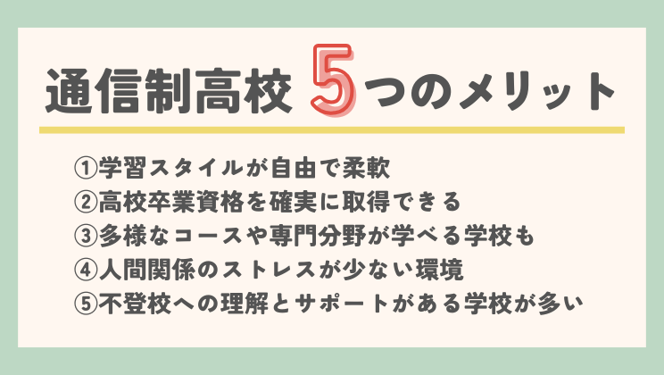 ③通信制高校なら、自分のペースで高校卒業資格を目指せ、フリースクールでの経験も活かせることが多い。