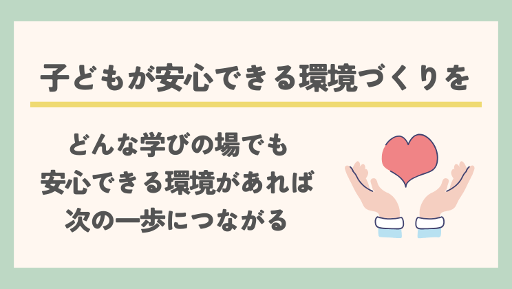そんなとき、親御さんにできることは、まずお子様の気持ちを受け止め、安全で温かい『心の基地』を作ってあげることかもしれません。