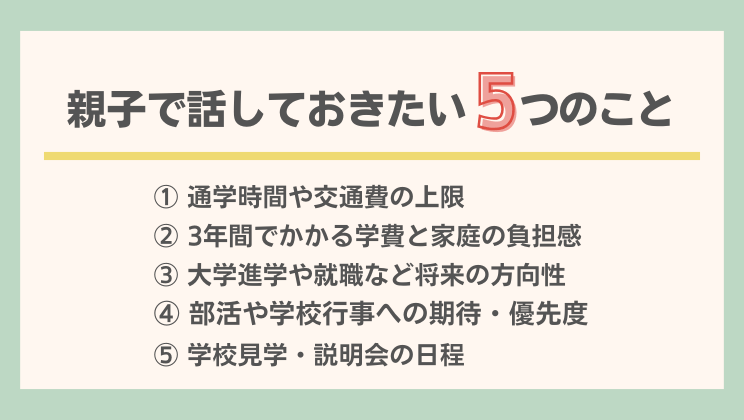 ここでは、進路を考えるうえで最初に親子で話しておきたい5つのポイントをご紹介します。