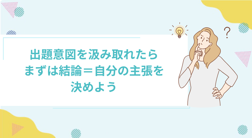 出題意図を汲み取れたら、まずは結論=自分の主張を決めます。