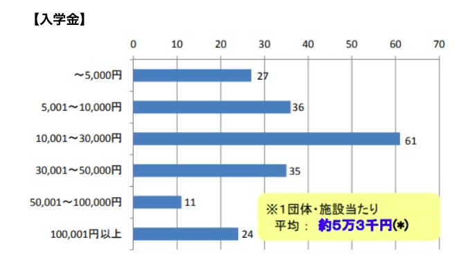 文部科学省の調査によると、入学金で多いのは10,001~30,000円で平均は約53,000円。