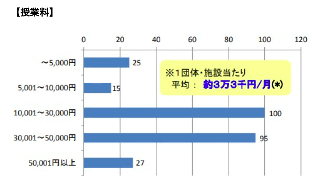 授業料で多いのも10,001~30,000円で、平均は毎月約33,000円となっています。