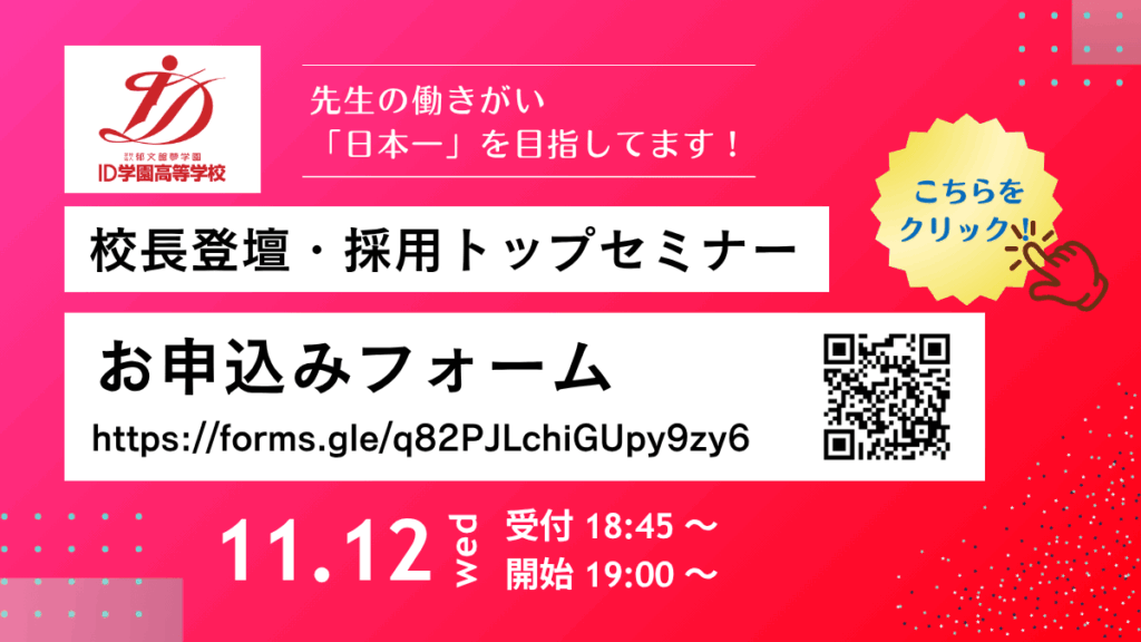 11/12(水)19時【校長登壇】採用トップセミナーお申込フォーム