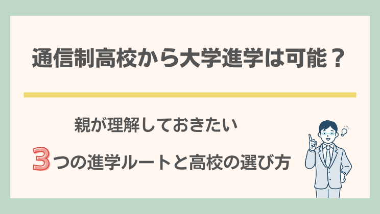 多くの学校で、授業時間外に補習や進学講座が設けられており、大学や短大への進学実績もあります。また、大学入試の仕組み(総合型選抜・学校推薦型・一般選抜など)は通信制高校と共通です。