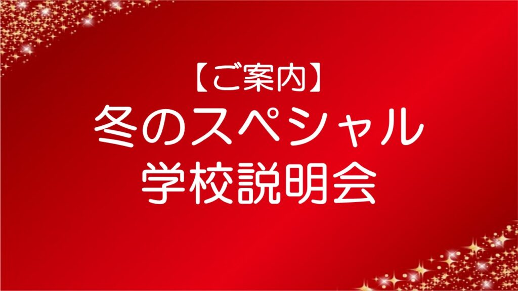 冬のスペシャル学校説明会を開催します 11/28(土)、12/5(土)、12/12(土)、12/19(土)の4回に渡り、冬のスペシャル学校説明会を開催いたします。 通常の学校説明会や個別相談会に加えて、「心理カウンセラーによる特別講演会」や在校生を交え... -